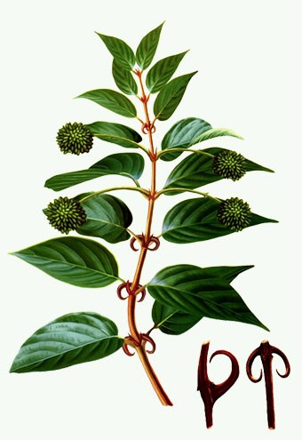 【來源】為茜草科常綠木質(zhì)藤本植物鉤藤 Uncaria rhynchophylla (Miq.) Jacks.、大葉鉤藤 Uncaria macrophylla Wall.、毛鉤藤 Uncaria hirsuta Havil.、華鉤藤 Uncaria sinensis (Oliv) Havil. 或無柄鉤藤 Uncaria sessilifructus Roxb. 的帶鉤莖枝。