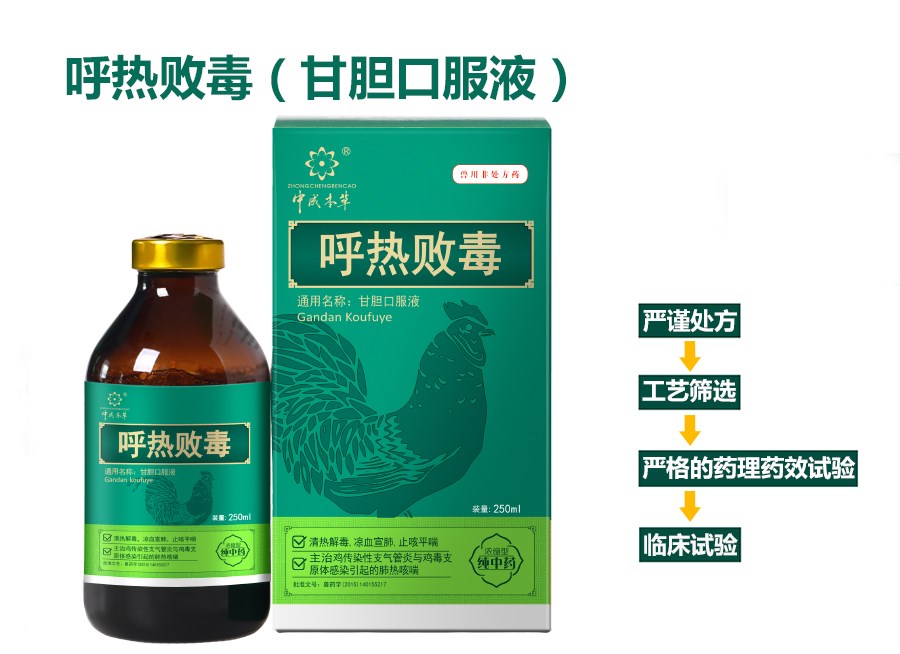 主治雞傳染性支氣管炎與雞毒 支原體感染引起的肺熱咳喘。