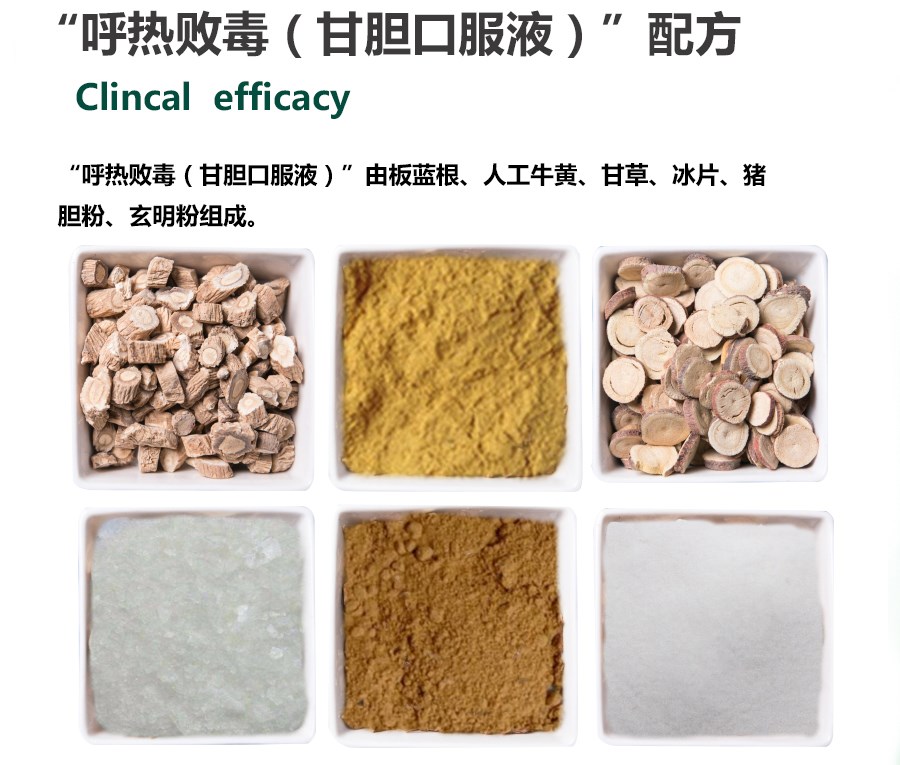 【處方】 板藍(lán)根、人工牛黃、甘草、冰片、豬膽粉、玄膽粉。