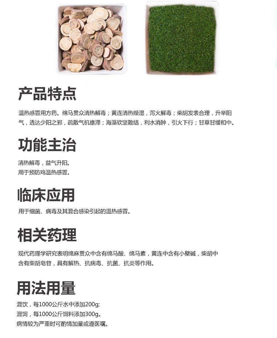 【主治】用于預(yù)防雞溫?zé)岣忻啊?/span>