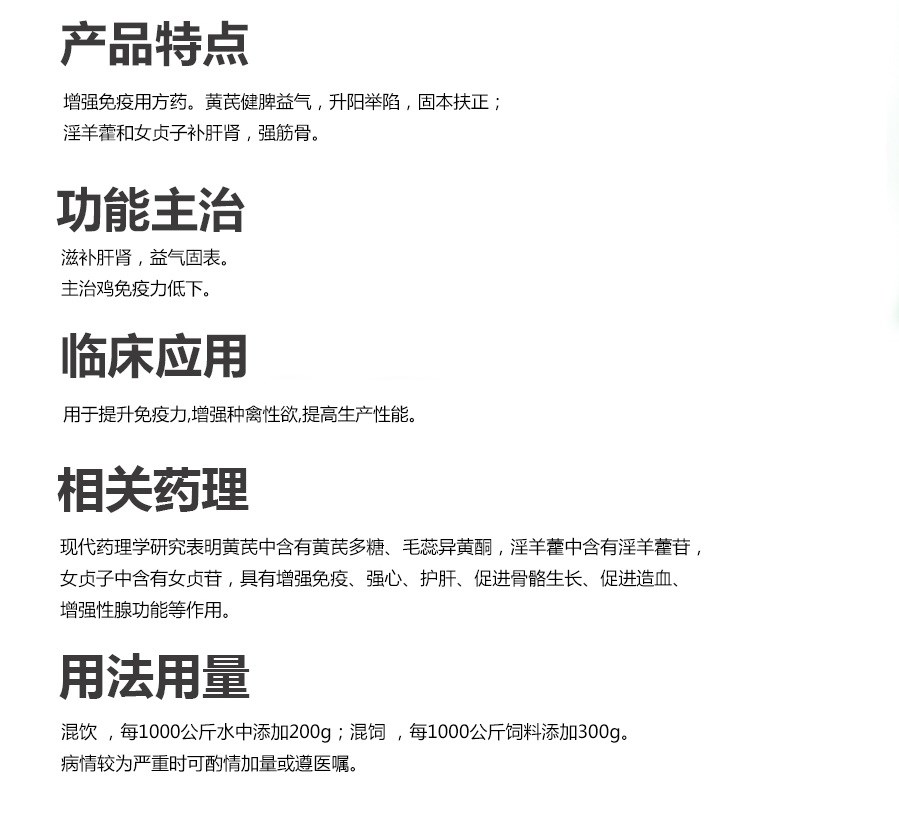 滋補肝腎,益氣固表。 主治雞免疫力低下。