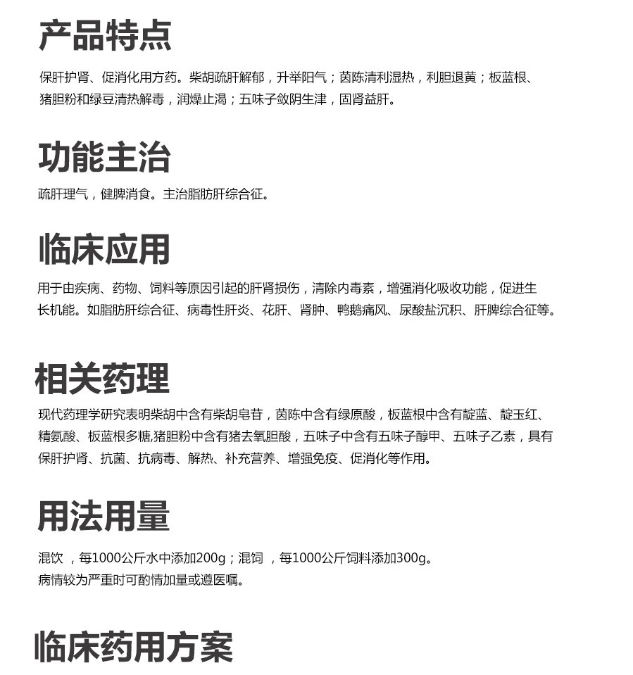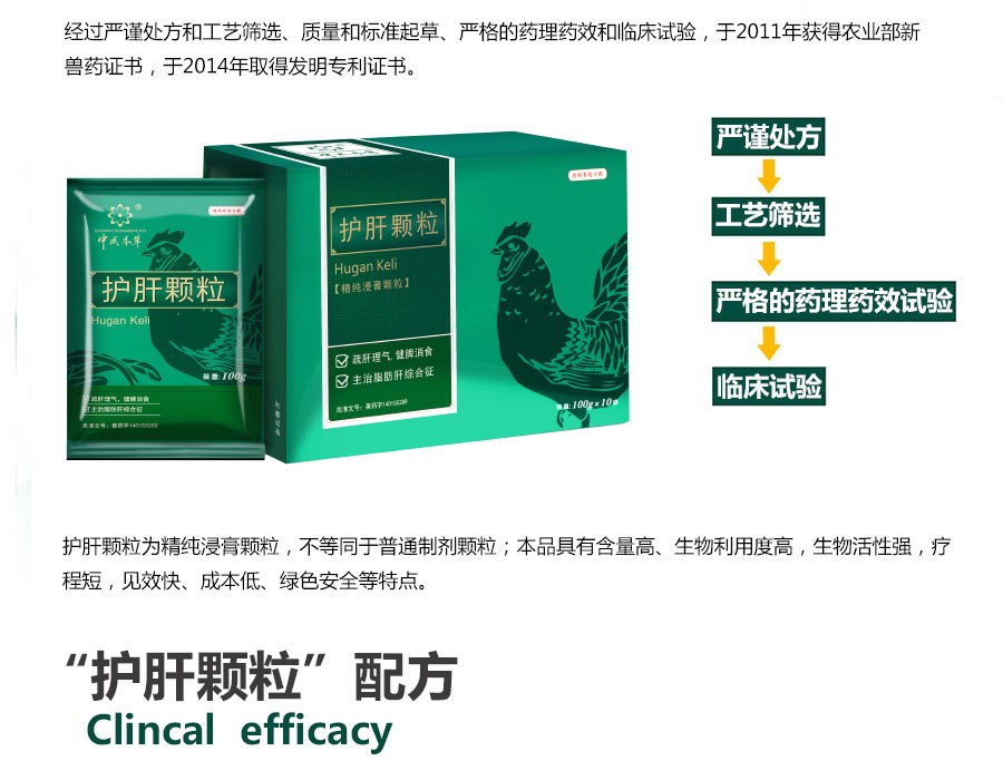 國家發(fā)明專利保護(hù)產(chǎn)品,國家三類新獸藥,保肝護(hù)腎、促消化用方藥。