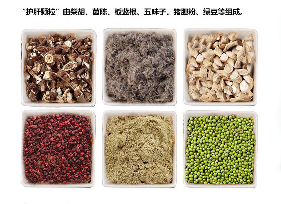 【處方】 柴胡、茵陳、板藍(lán)根、五味子、豬膽粉、綠豆。