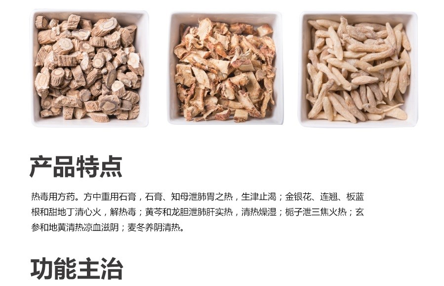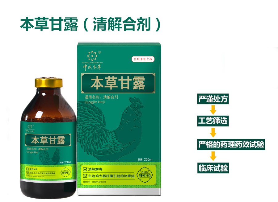 清熱解毒,主治雞大腸桿菌引起的熱毒癥。