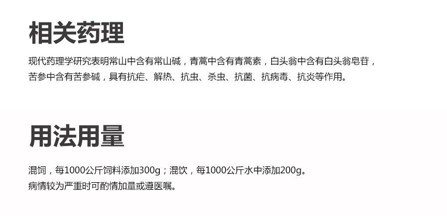 清熱燥濕,涼血止痢。主治球蟲病。
