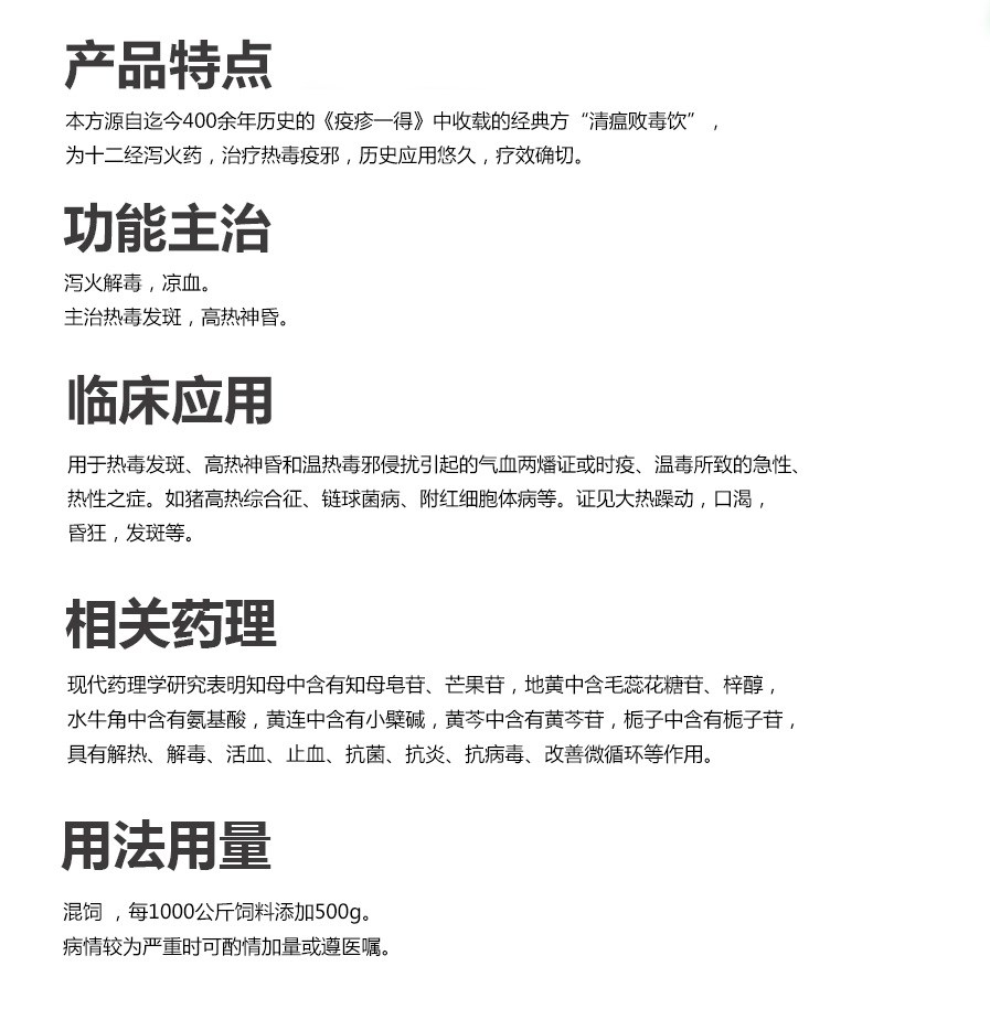 瀉火解毒,涼血。 主治熱毒發(fā)斑,高熱神昏。