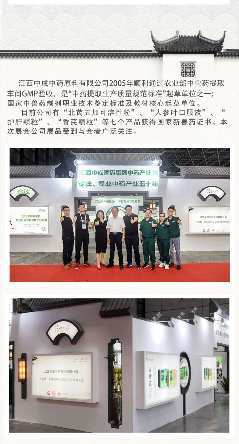 | 合作共贏、綠色發(fā)展——江西中成中藥原料有限公司亮相2019中國(guó)飼料工業(yè)展覽會(huì) |