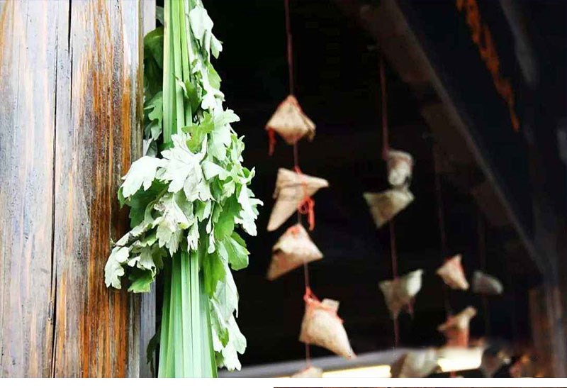 端午節(jié)素有懸艾葉、菖蒲,掛香囊,吃粽子,飲雄黃酒等傳統(tǒng)習(xí)俗。兩千多年來(lái),一直是全民健身、防疫祛病、避瘟驅(qū)毒、祈求健康的民族佳節(jié),充分體現(xiàn)了傳統(tǒng)中醫(yī)藥的“治未病”精髓。 懸艾葉、菖蒲